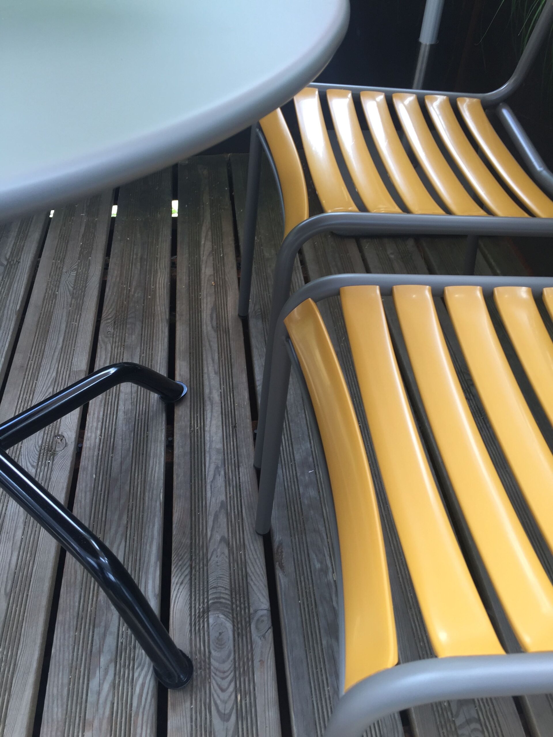 Stilgerächt kombiniert zum Terrassen-Holzboden, Eisengeländer (…und den farblich passenden Pflanzen:)